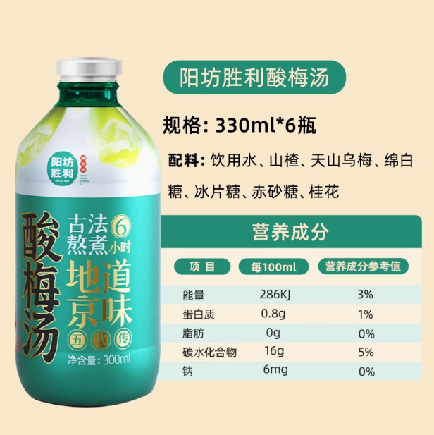 [Hot sale] Sour plum soup 330ml*6 bottles*1 box ,Sour plum soup 330ml*6 bottles*2 boxes |