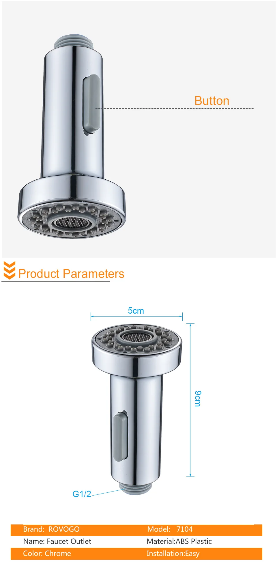 73 reviews for ROVOGO Pull-Out Spray Head Replacement Part for Kitchen Sink Faucet, Chrome/Brushed Nickel Finish